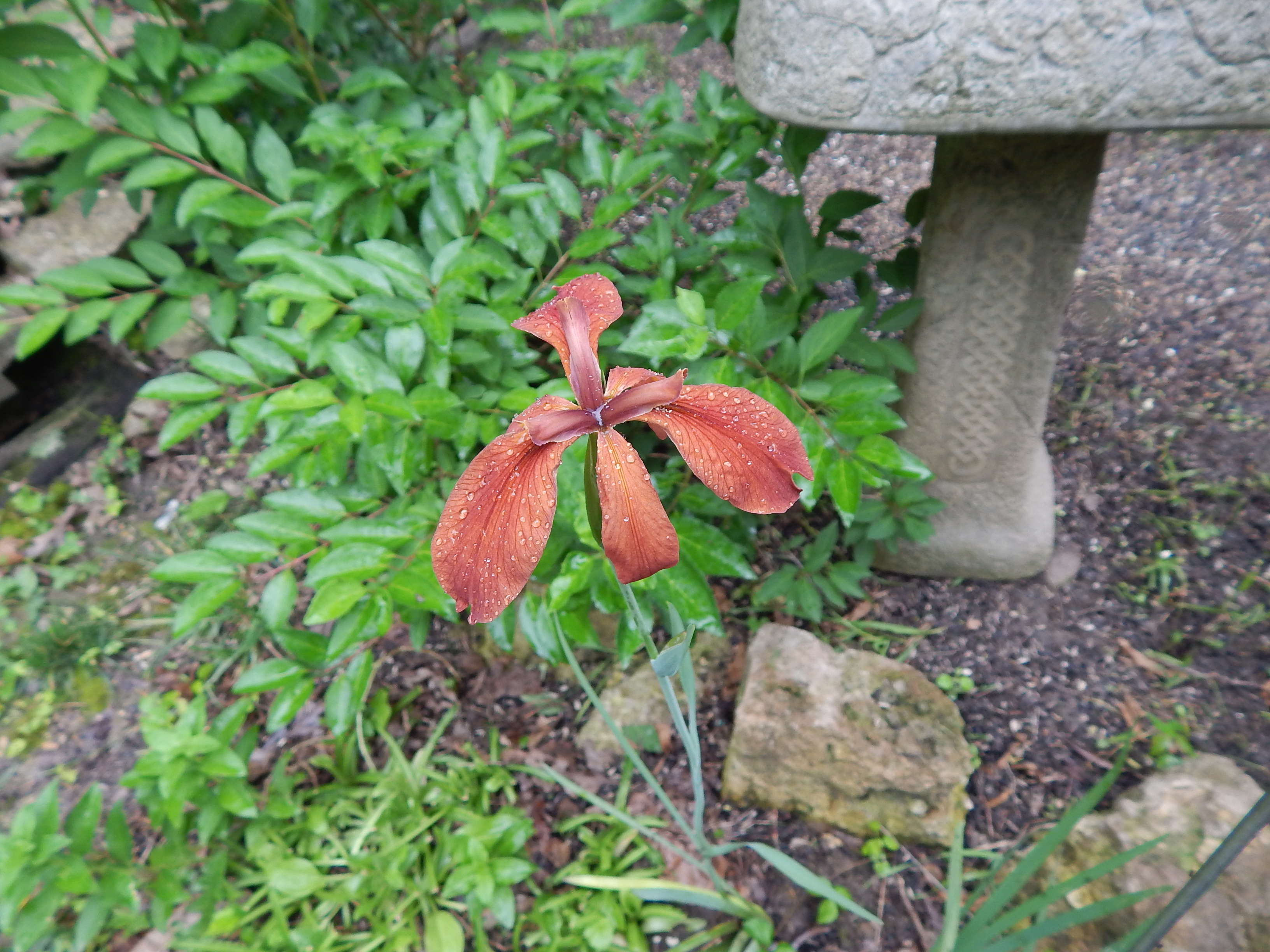 I keep this planted next to my bird bath as I dump the water daily to put fresh water in the bird bath. This does keep the soil sufficiently damp. The leaves die back in August as the plant blooms and then reappear when it is finished and remain green through the winter.  I purchased my root stock for the Copper Iris from Prairie Moon Nursery in Winona, MN. While I don’t endorse businesses I have had great success with root stock I have purchased from them.