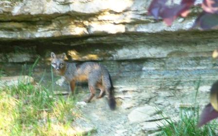 Pictured is an Eastern Gray Fox female who regularly comes down to our bird feeder to eat bird seed, fruit and nuts at our bird feeder. She started to run off and I told her how pretty she was and she stopped long enough to listen and let me get this picture.